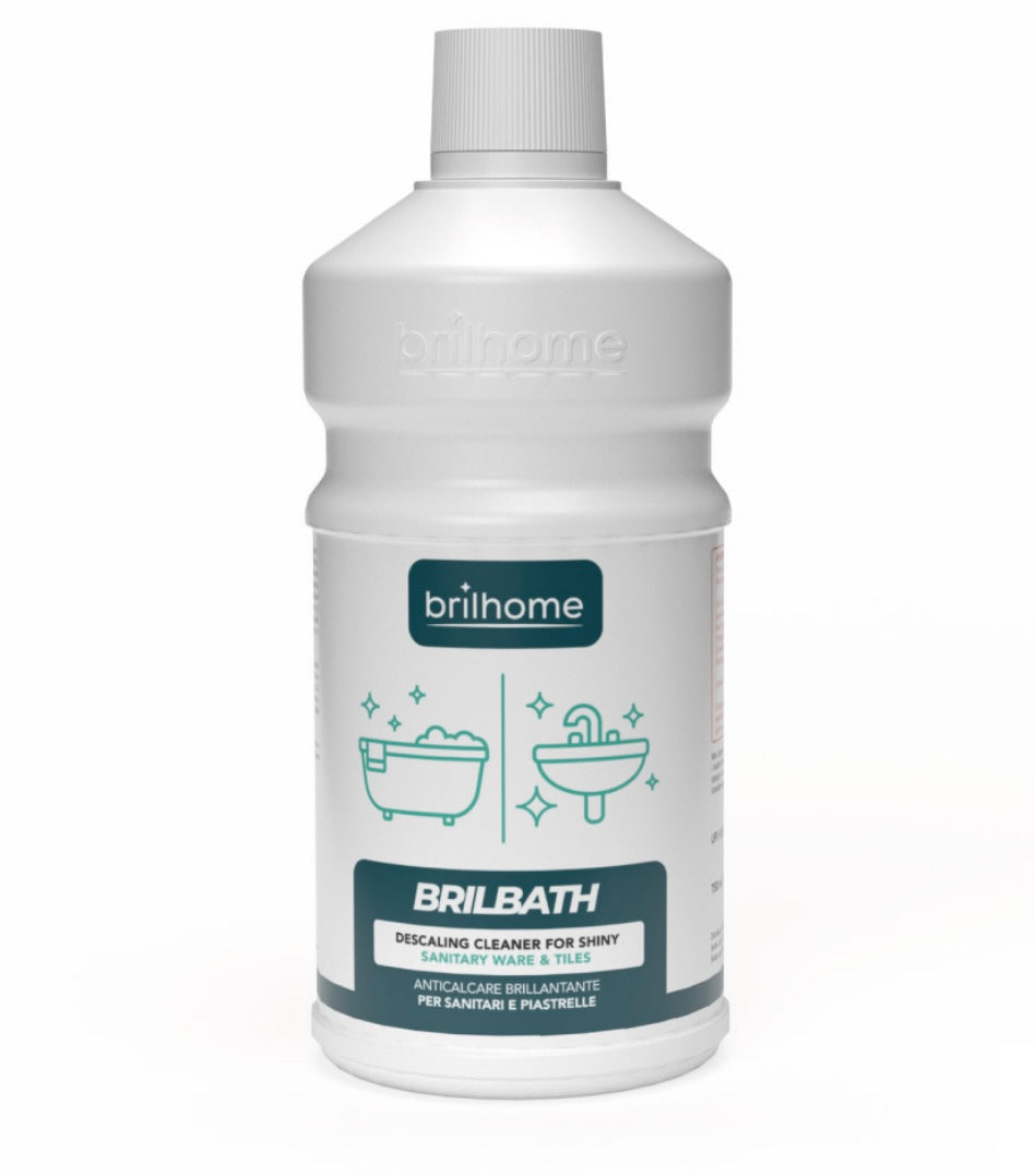 ,,Brillbath" yra purškiamas kalkių nuosėdų valiklis, kuris kruopščiai nuvalo visus vonios kambario paviršius. Efektyviai ir greitai pašalina kalkių nuosėdas, vandens likučius, sunkiai įsisenėjusius nešvarumus, muilo likučius, oksidacijas ir kitas apnašas. Dėl dvigubo nukalkinimo ir poliravimo poveikio paviršiai po panaudojimo tampa idealiai švarūs ir blizgantys. Keletą dienų apdoroti paviršiai taip pat yra apsaugoti nuo lėto ir laipsniško kalkakmenio nusėdimo iš vandens. Jis nėra ėsdinantis odos ir neturi įtakos įprastoms vonios kambariuose esančioms medžiagoms, tokioms kaip metakrilatas, stiklas ir dažyti dušo kabinų ir kabinų profiliai, vonios arba vandens masažo vonios. Talpa: 750 ml.